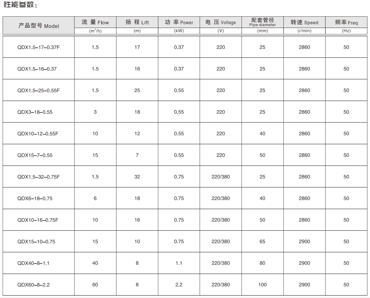 1.電泵潛(qian)水深度(du)應在0.5~5米(mi)之間爲(wei)宜,離水(shui)底距離(li)不得低(di)于0.5米;