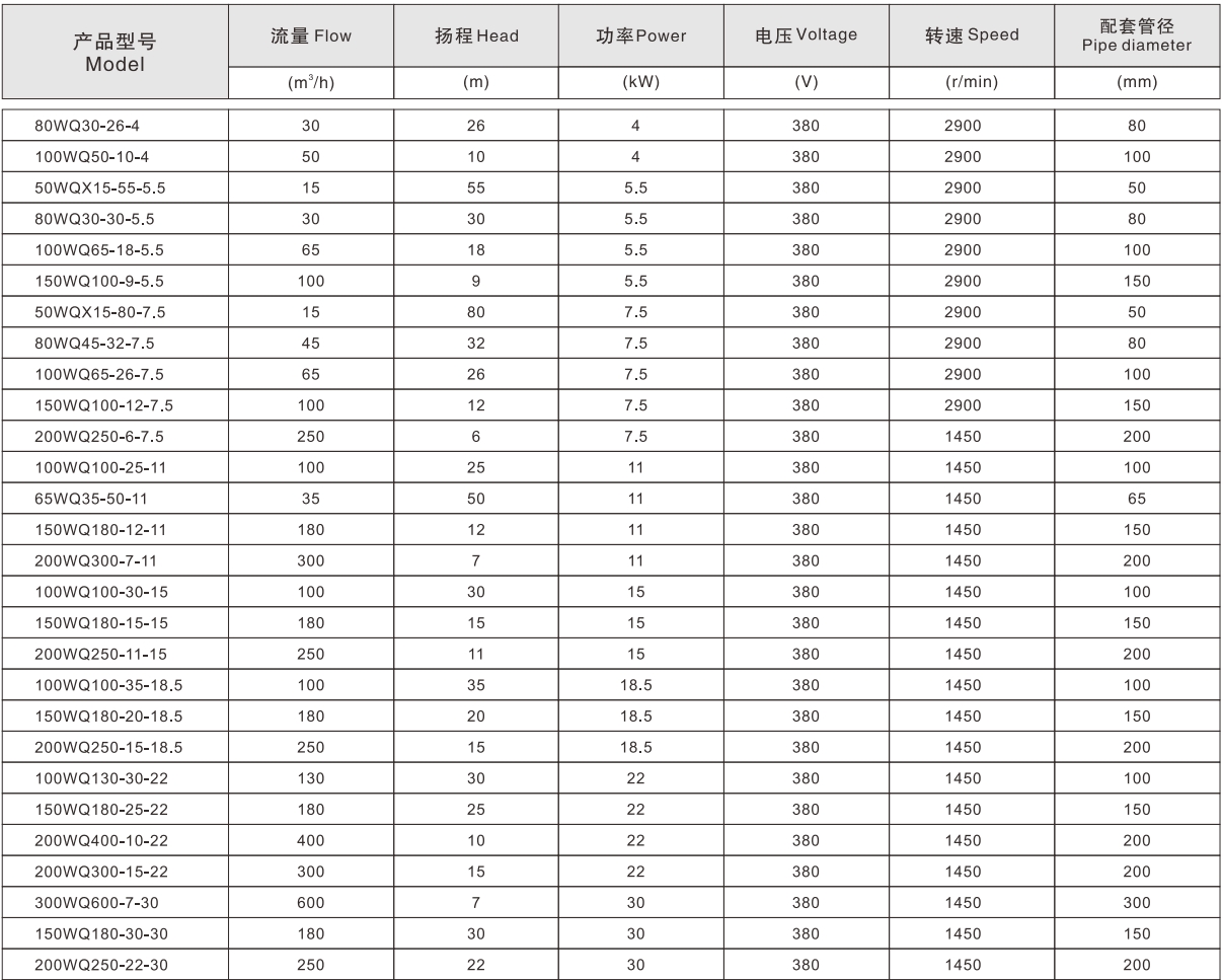 WQD無堵(du)塞污水(shui)污物潛(qian)水電泵(beng)