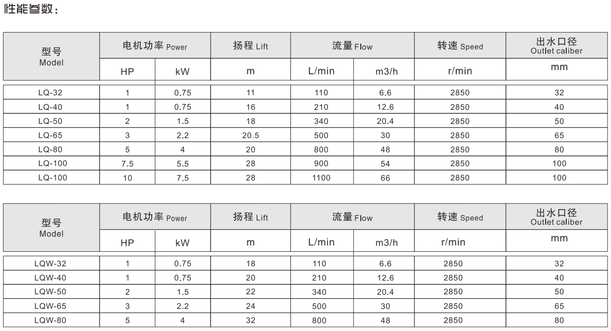 LQ,LQW管(guan)道離心泵(beng)供輸送清(qing)水及不含(han)固體顆粒(li),不具有腐(fu)蝕♊性物理(li)化學性質(zhi)類似于清(qing)水的其他(ta)液體之用(yong)